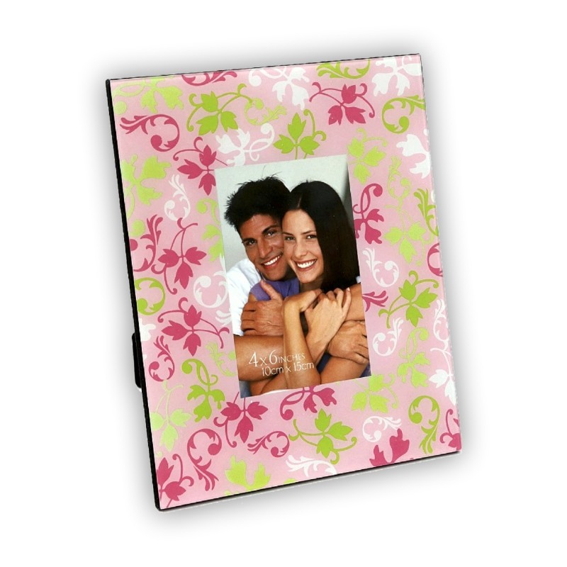 Fotorámeček kovový, velký pro fotografii velikosti (A6) 10 x 15 cm. Fotorámeček je opatřen opěrkou, která umožňuje jeho postavení. Lze jej postavit v poloze na šířku i na výšku. Celý rámeček je krytý sklem. Velikost rámu je 20,5 x 25,5 cm.