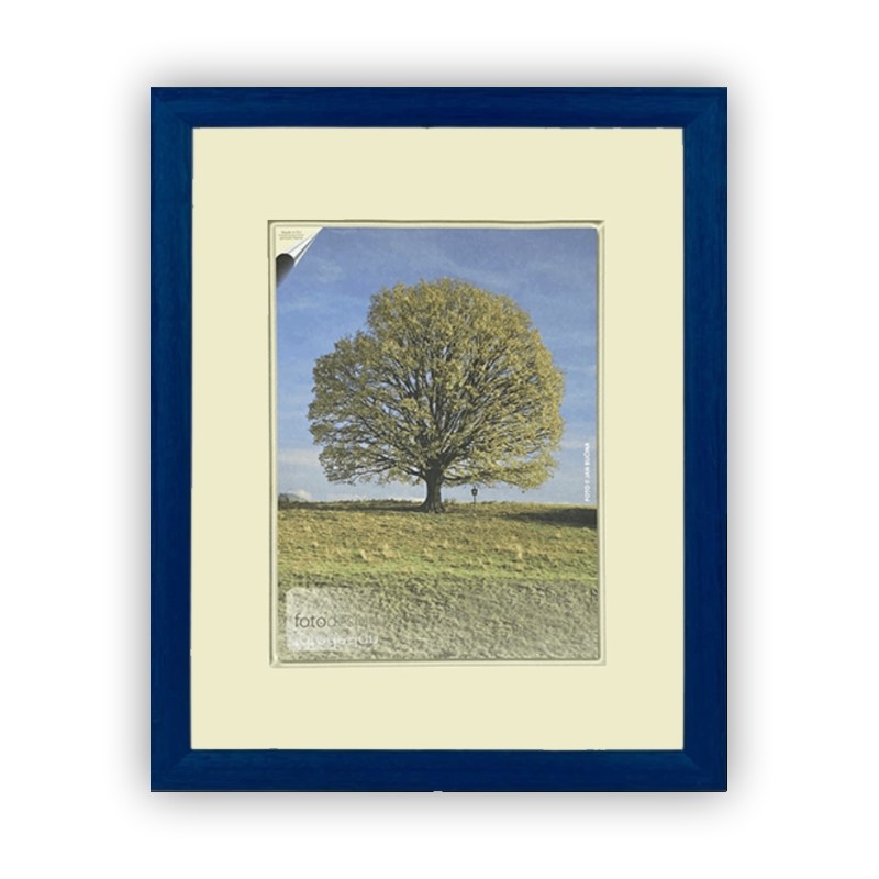 Fotorámeček dřevěny modrý, pro fotografii do velikosti 24 x 30 cm (s paspartou 15 x 20 cm). Fotorámeček je opatřen háčky na zavěšení. Lze jej zavěsit v poloze na šířku i na výšku. Fotografie je kryta sklem. Velikost rámu je 32,8 x 26,8 cm, lišta 18 x 15 mm.