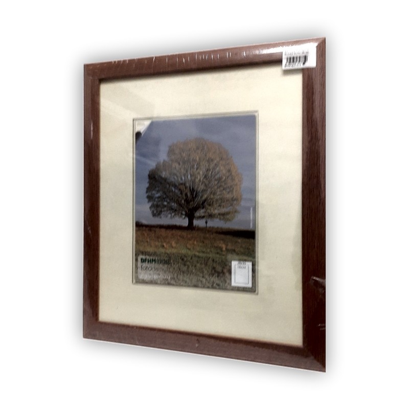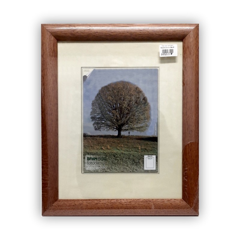 Fotorámeček dřevěny světle hnědý, pro fotografii do velikosti 28 x 35 cm (s paspartou 18 x 24 cm). Fotorámeček je opatřen háčky na zavěšení. Lze jej zavěsit v poloze na šířku i na výšku. Fotografie je kryta sklem. Velikost rámu je 31 x 34 cm, lišta 36 x 18 mm.