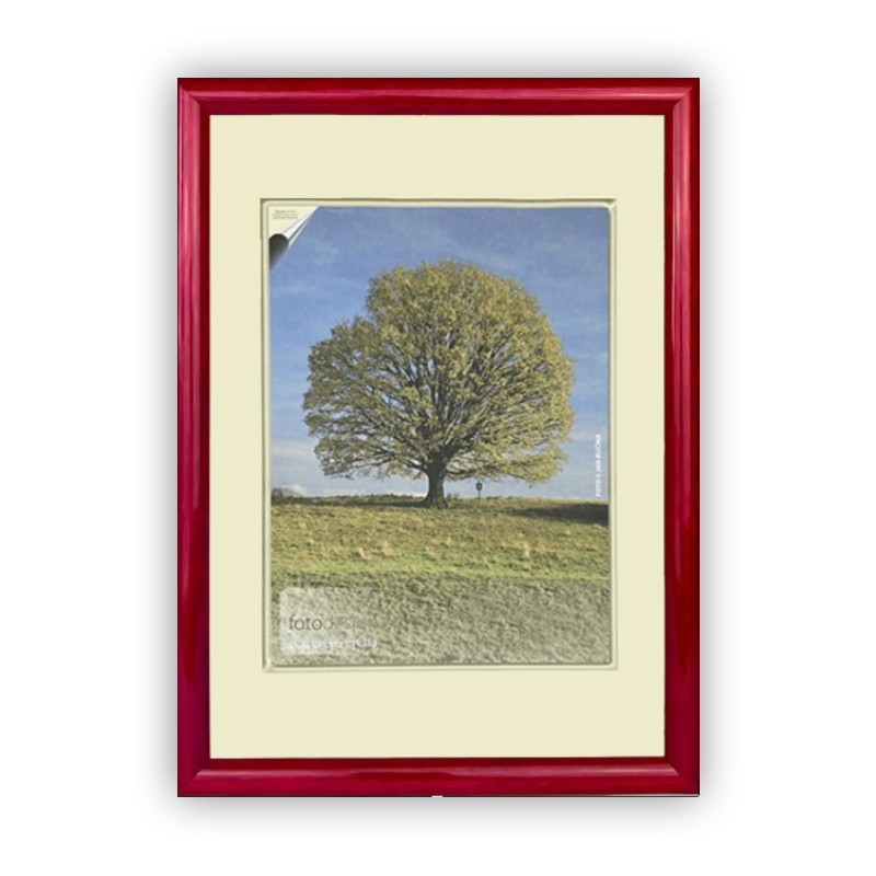 Fotorámeček dřevěny červený, pro fotografii do velikosti 24 x 30 cm (s paspartou 15 x 20 cm). Fotorámeček je opatřen háčky na zavěšení. Lze jej zavěsit v poloze na šířku i na výšku. Fotografie je kryta sklem. Velikost rámu je 32,8 x 26,8 cm, lišta 19 x 15 mm.