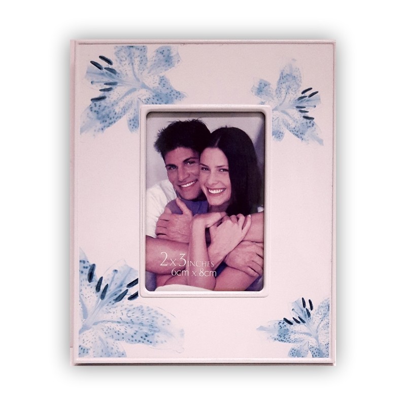 Fotorámeček kovový pro fotografii 6 x 8 cm. Fotorámeček je opatřen opěrkou, která umožňuje jeho postavení v poloze na výšku. Fotografie je kryta sklem. Celková velikost 10,2 x 12,7 cm.