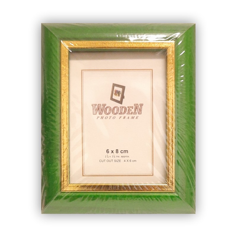 Fotorámeček dřevěny. zelený. pro fotografii do velikosti 6 x 8 cm. Fotorámeček je opatřen opěrkou, která umožňuje jeho postavení i háčky na zavěšení. Lze jej postavit nebo zavěsit v poloze na šířku i na výšku. Fotografie je kryta sklem. Velikost rámu je 8,8 x 10,8 cm, lišta 15 x 12 mm.