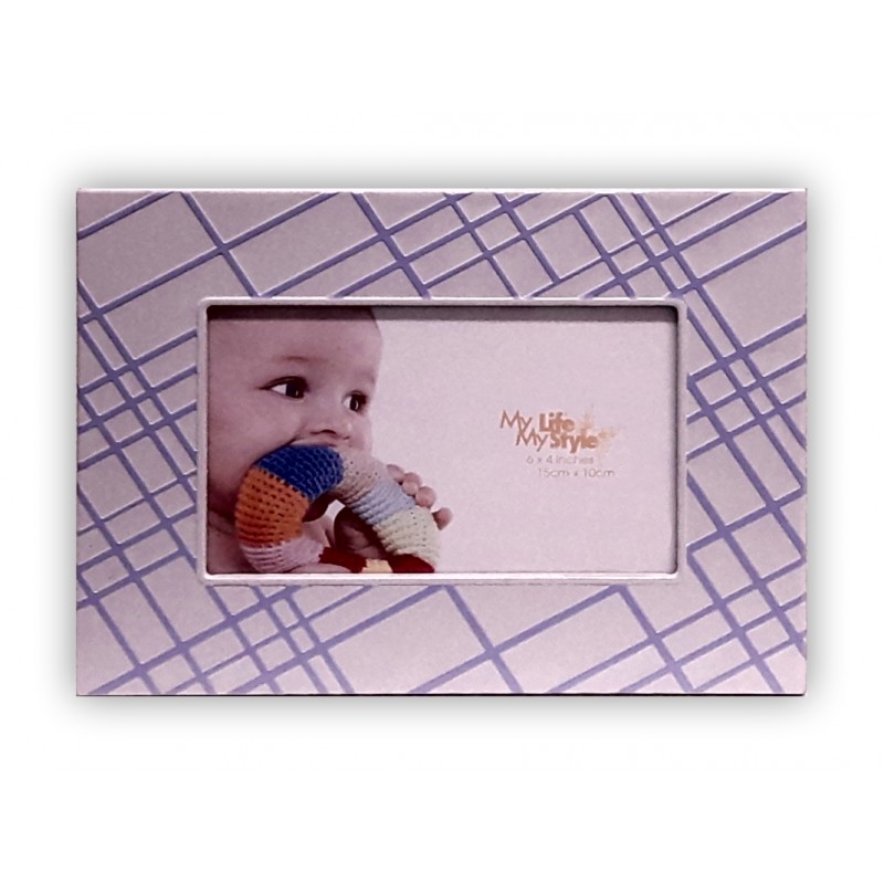 Fotorámeček kovový pro fotografii velikosti (A6) 10 x 15 cm. Fotorámeček je opatřen opěrkou, která umožňuje jeho postavení. Lze jej postavit v poloze na šířku i na výšku. Fotografie je kryta sklem. Velikost rámu je 16,2 x 21,4 cm.