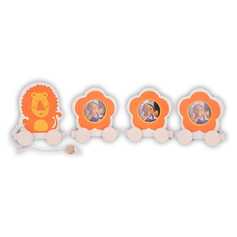 Atraktivní pohyblivý dřevěný fotorámeček na 3 fotografie s reliéfními prvky a designem ve tvaru vláčku. Vkládají se do něj 3 fotografie o velikosti 5 x 5cm.