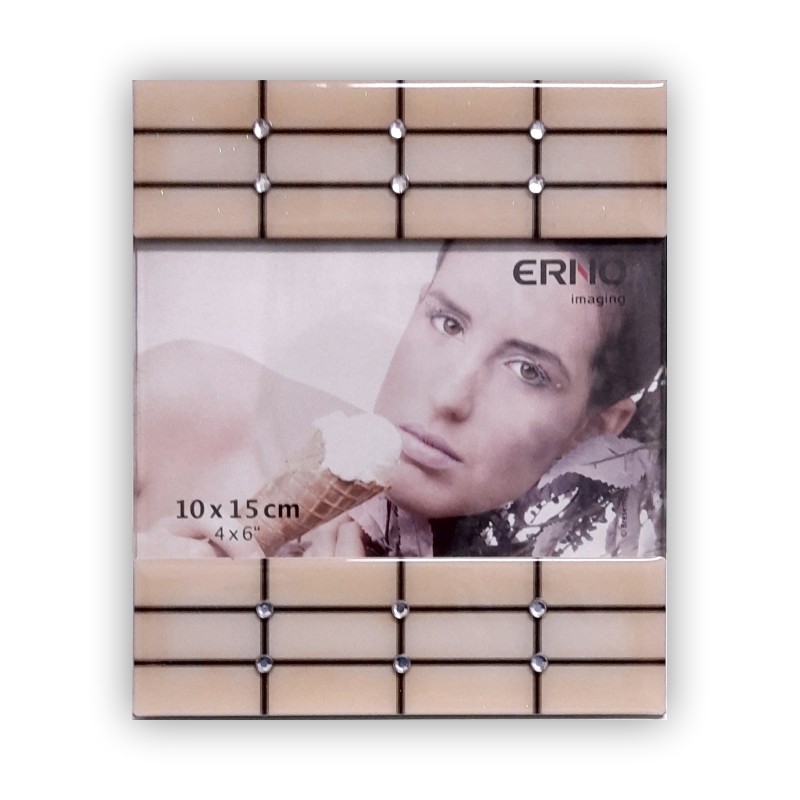 Fotorámeček skleněný pro fotografii velikosti (A6) 10 x 15 cm. Fotorámeček je opatřen opěrkou, která umožňuje jeho postavení. Lze jej postavit v poloze na šířku. Fotografie je kryta sklem. Velikost rámu je 15 x 18 cm.