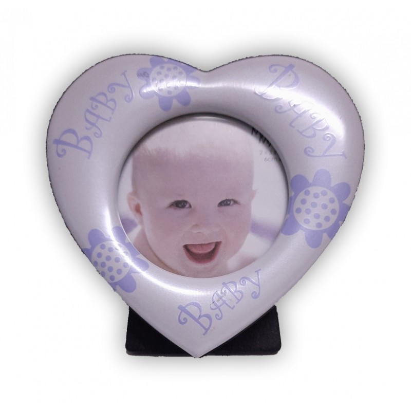 Dětský fotorámeček kovový ve tvaru srdce pro fotografii o velikosti 5 x 5 cm. Fotorámeček je opatřen opěrkou, která umožňuje jeho postavení v poloze na výšku. Fotografie je kryta sklem. Celková velikost 8 x 8,5 cm.